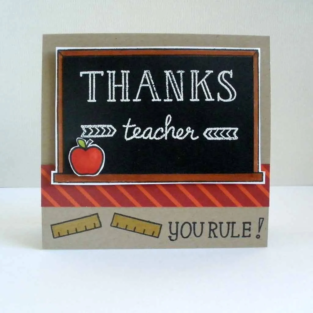 Thank the teacher in your life any day of the year! With a versatile chalkboard and matching sentiments, this set of 13 clear stamps is a blank slate for your creativity.