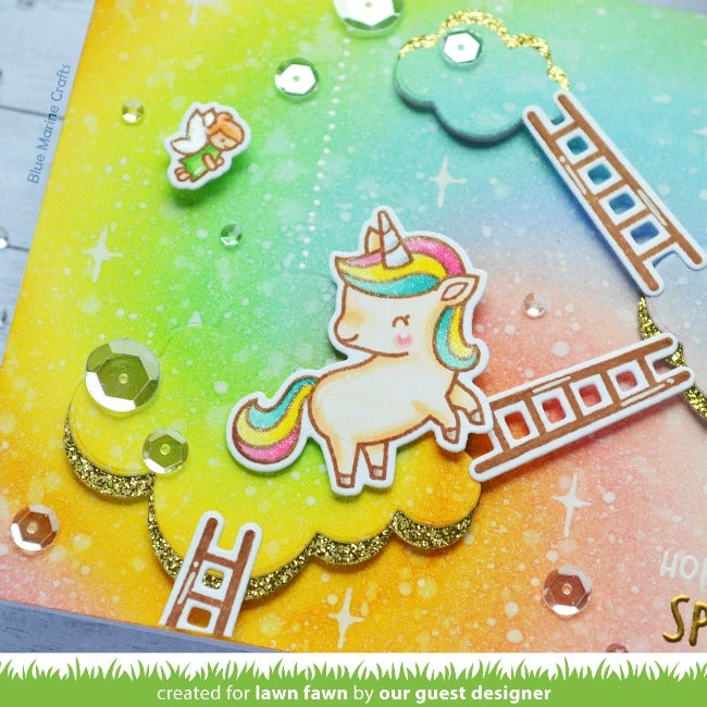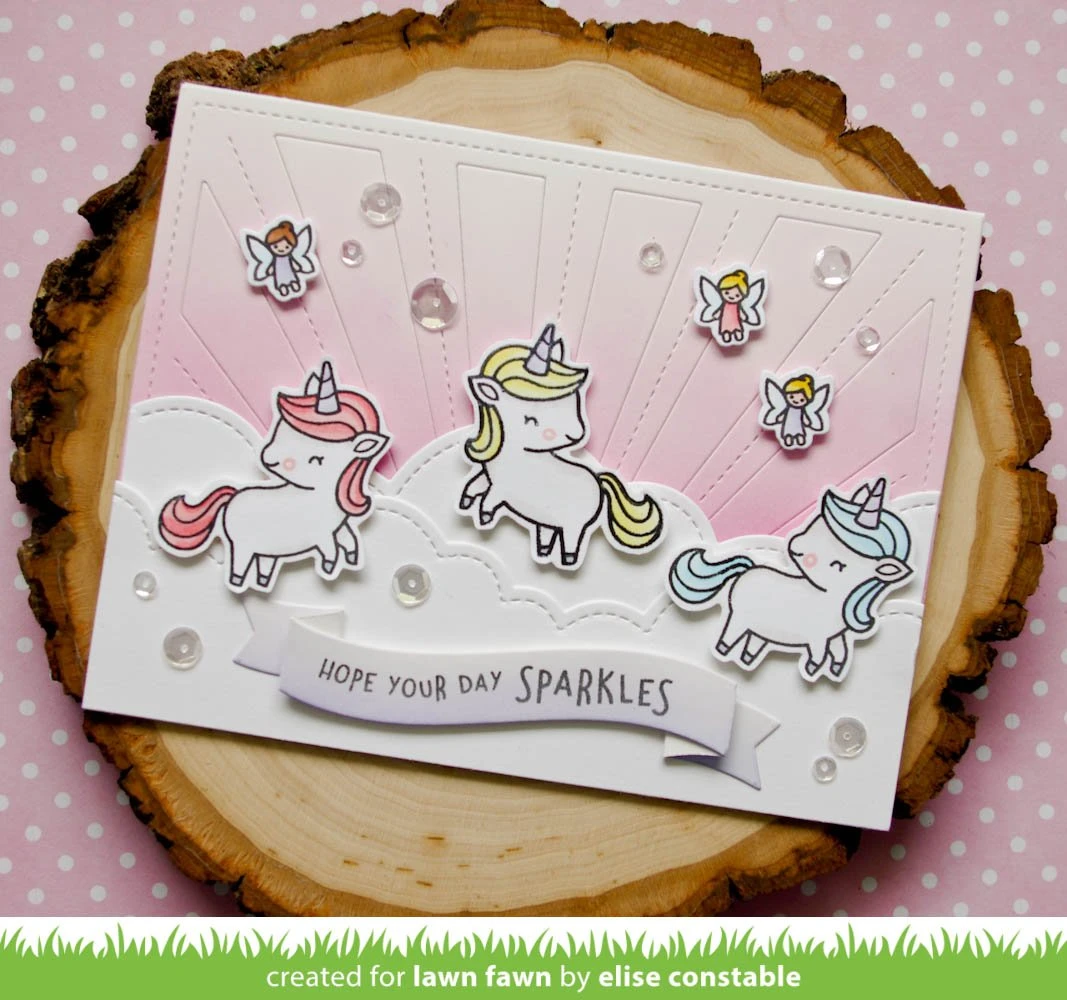 Your cards and crafts will sparkle with this cute mini stamp set! This cute unicorn and fairies are great for anyone who loves a little magic.