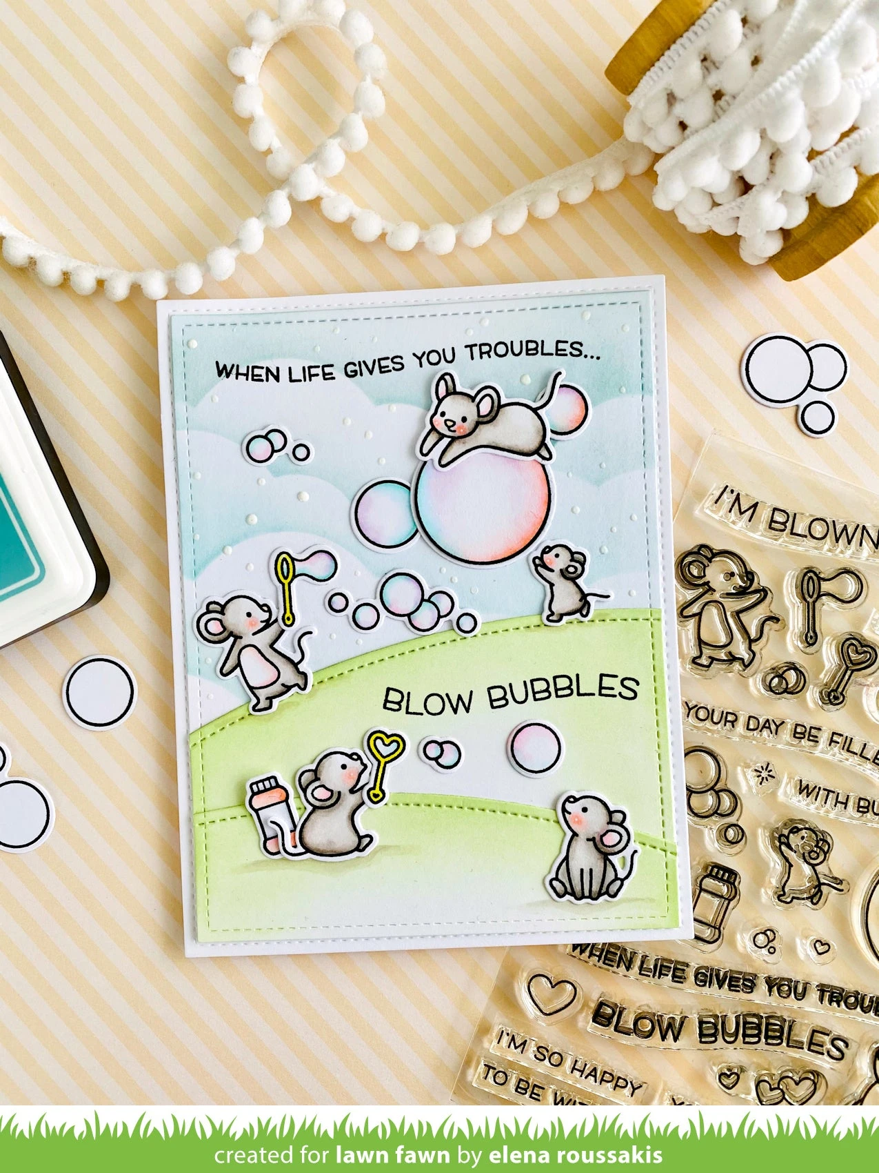So cute you’ll be blown away! This set of little mice and bubbles is great for everyday cards, including thinking of you and encouragement.