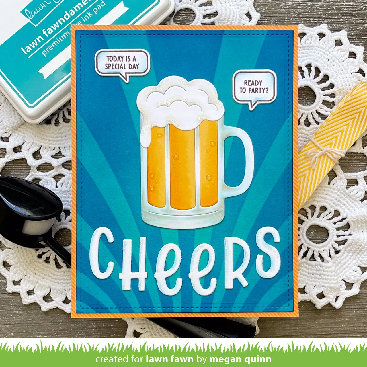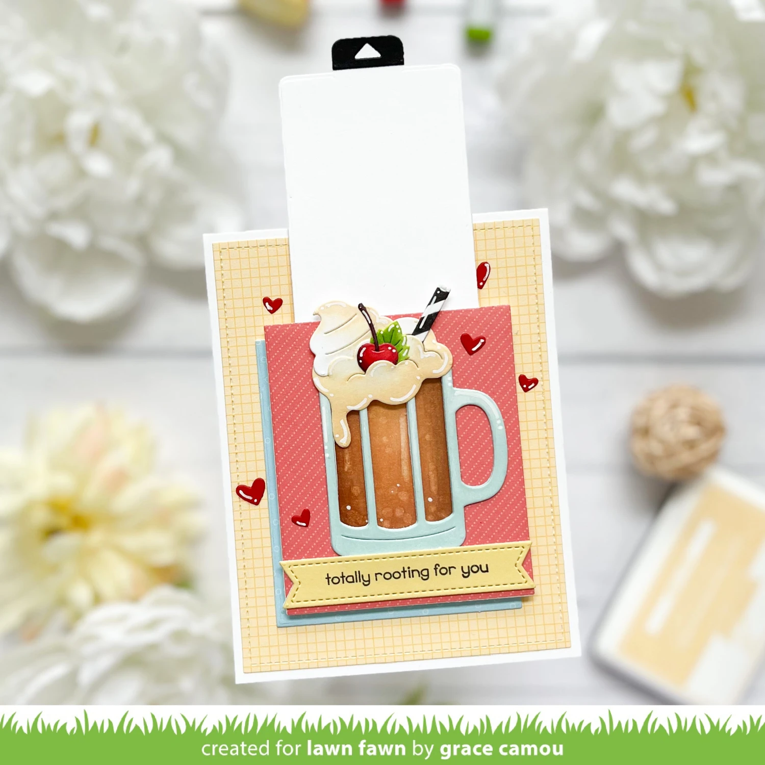 This frosty stein glass can be filled with a bubbly root beer float, or your favorite drink. This set is perfect for Father’s Day! Cut your stein from Vellum for that frosty mug look. Use your favorite colors of cardstock to create a unique look each time.