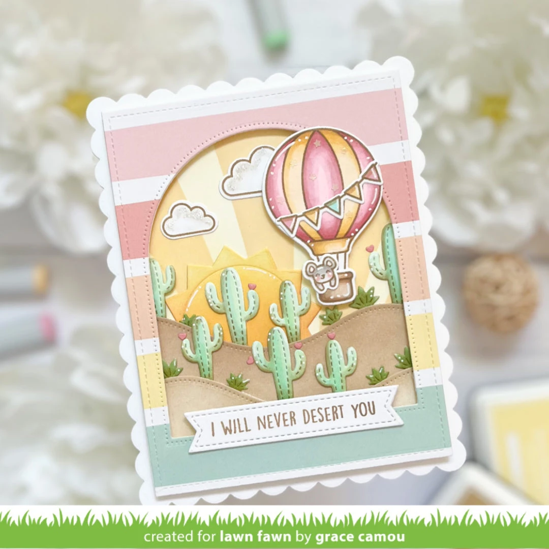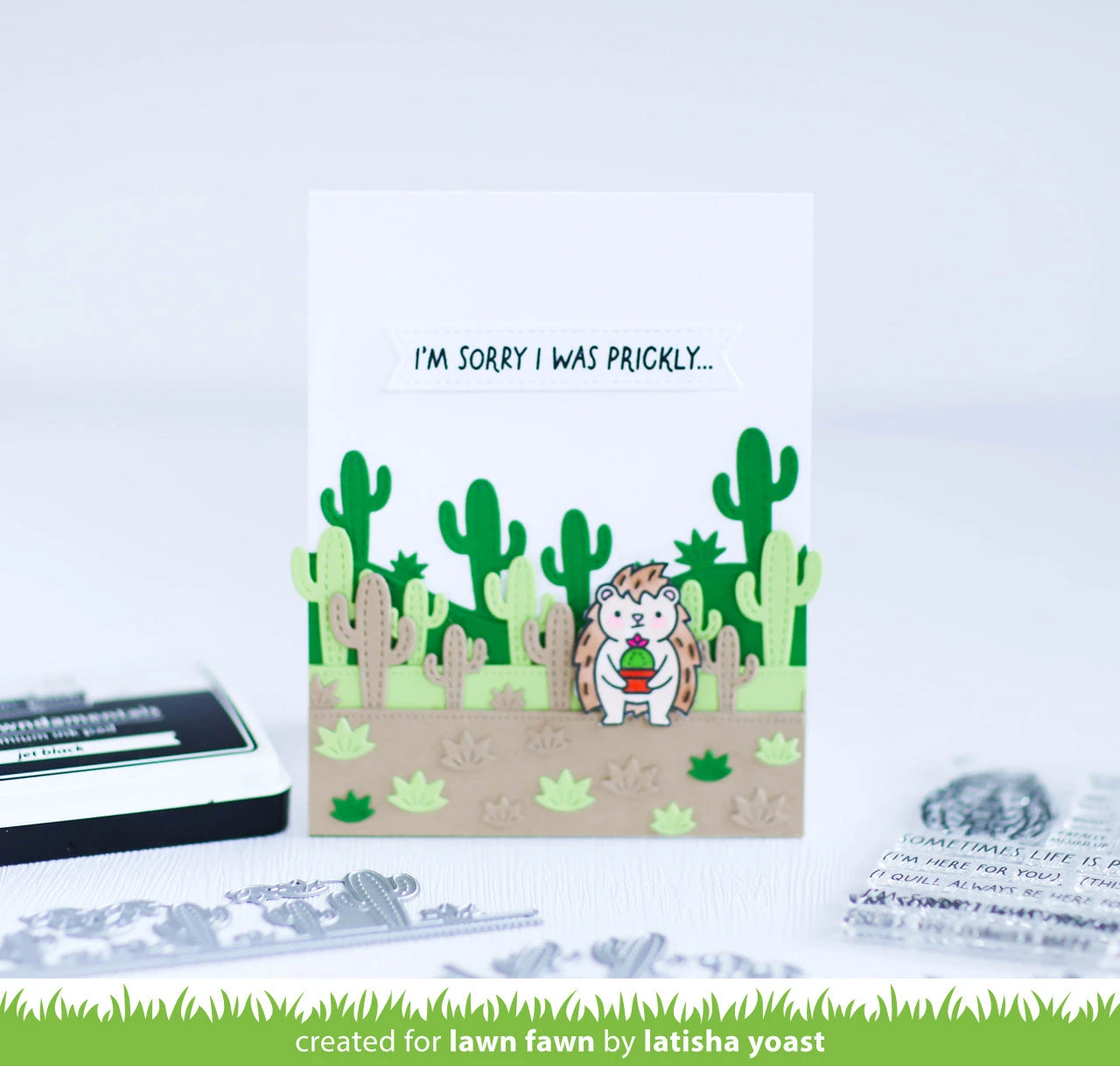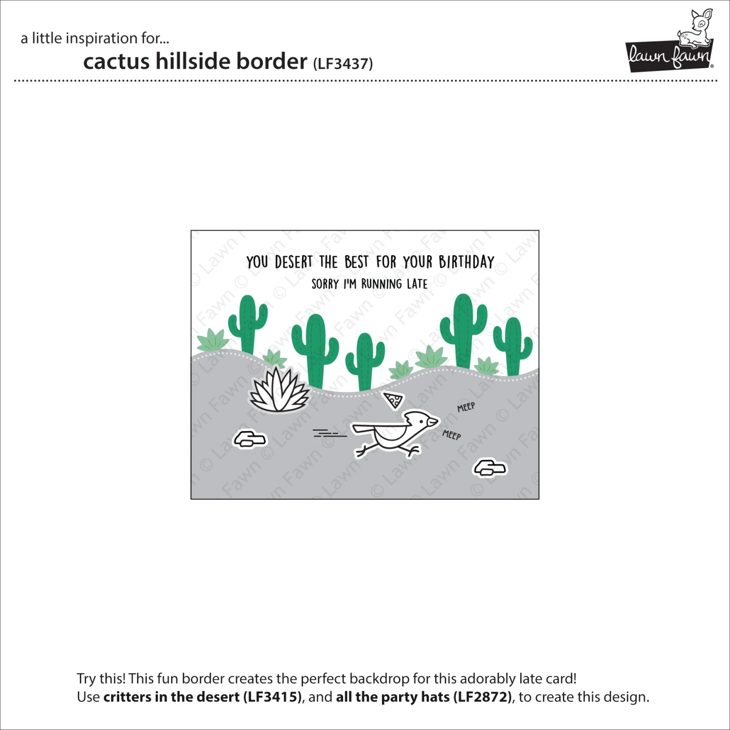 This hillside cactus border is perfect for adding a desert backdrop to your cards and crafts! Use your favorite cardstock or patterned paper for a unique look each time!