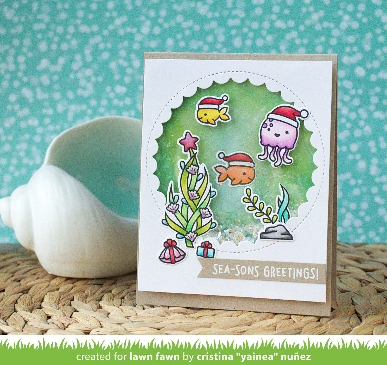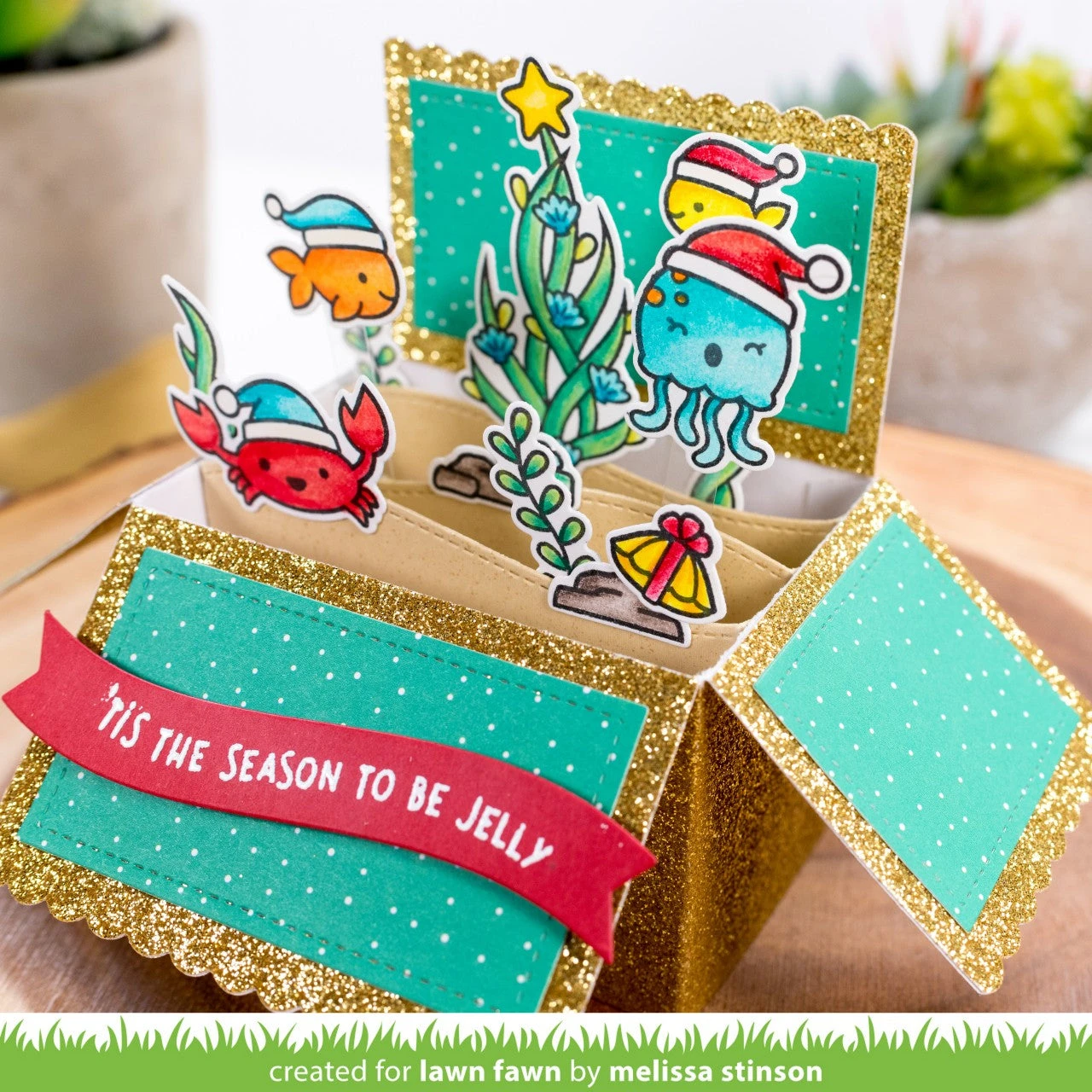 Coordinating set ideas: Pair this set with Flippin’ Awesome to create an interactive card with a jellyfish (or crab) singing Christmas carols! Or, use it with Mermaid for You to create a cute scene with mermaids decorating a Christmas tree. You can also use it with Magic Picture Changer and Keep On Swimming for a cute card with a shell opening to reveal a pearl!