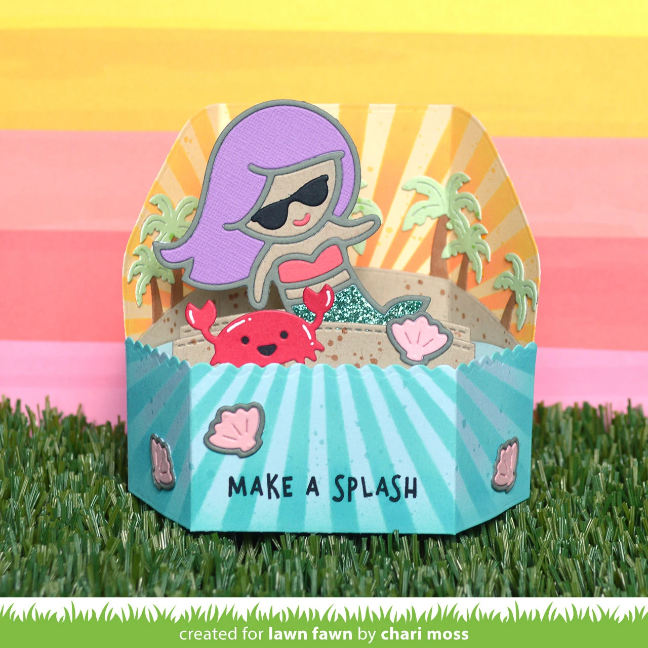For all our ocean-themed projects, we have created a paper-piecing die set with your favorite mermaid! Piece together a pretty mermaid using colorful cardstock and patterned papers. Then use sentiments from Mermaid for You for a perfect greeting!