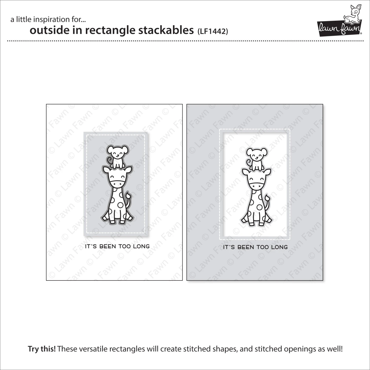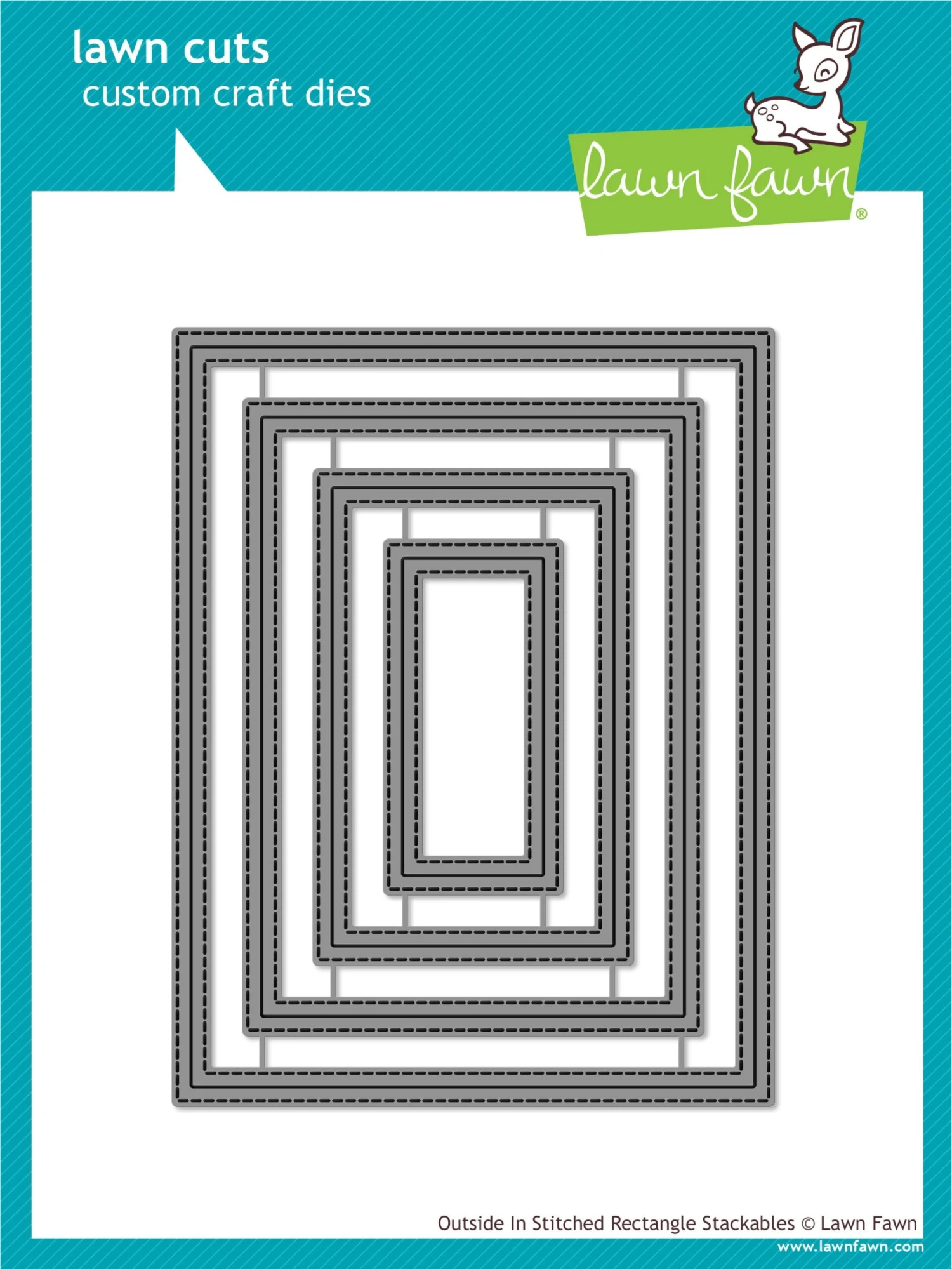 Outside In Stitched Rectangle Stackables includes four rectangles with a “stitched” border detail on the outside and inside edges. These versatile dies will create stitched shapes, and stitched openings as well!