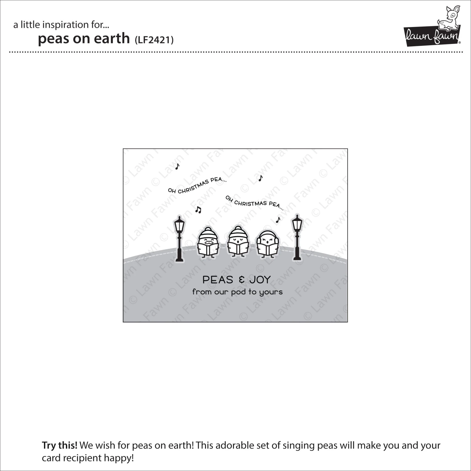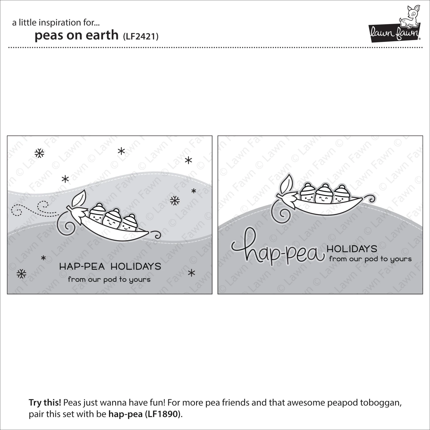 Coordinating set ideas: Pair this set with Be Hap-Pea and Stitched Hillside Backdrop to create a cute card with peas sledding down a hill. Create a snowy sky for your scene with Snowy Sky Stencil. Use the earth from Reveal Wheel Circle Sentiments for an adorable “Peas on Earth” card that features peas circling the earth.