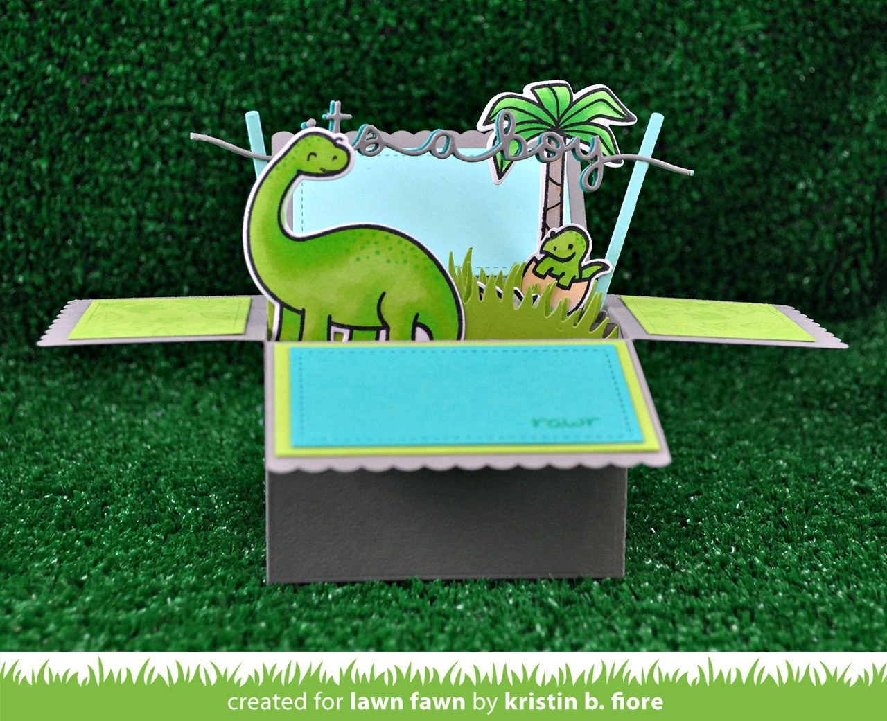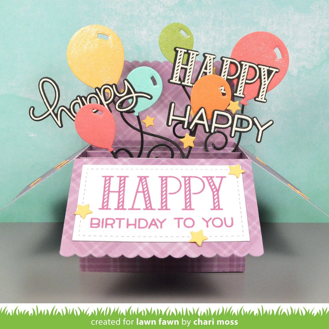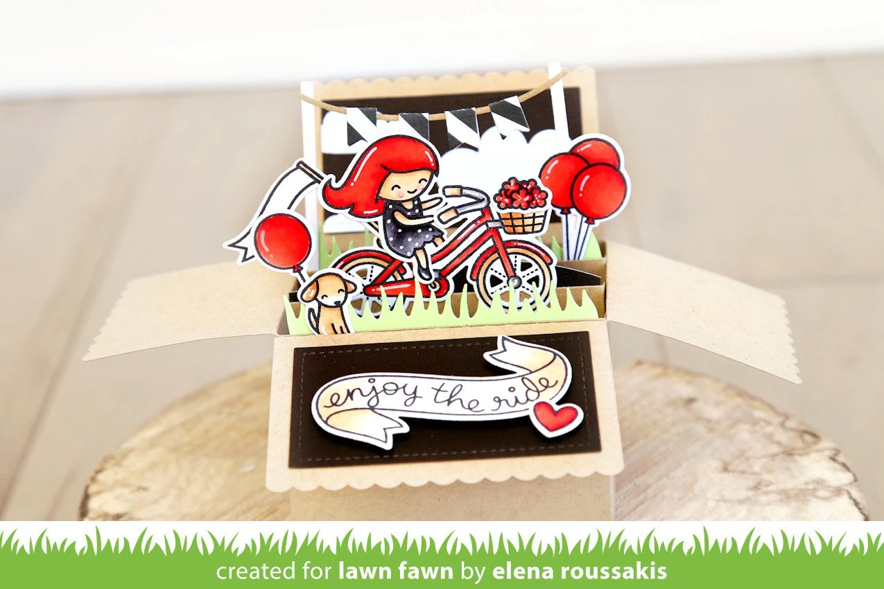 This box folds flat to fit in a standard size envelope, then opens to reveal a pop-up surprise! Decorate this box with the included panels and banners, and add critters and other elements to create a cute scene.