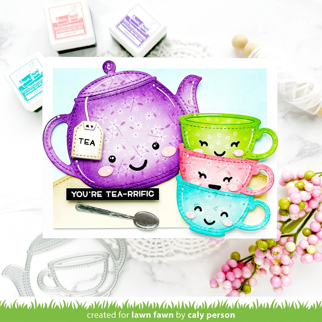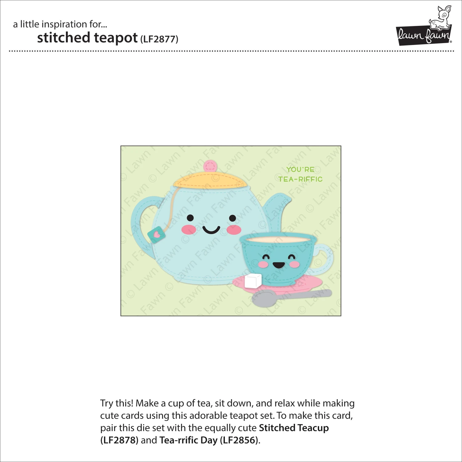 Coordinating set ideas: Turn the Stitched Teapot in a teapot house using doors, windows and accessories from the Build Your Own collection! Use the cute critters and sentiments from Tea-rrific Day and Tea-rrific Day Add-On to create a birthday card. Pair the teapot with Stitched Teacup for another option for all the tea lovers in your life!