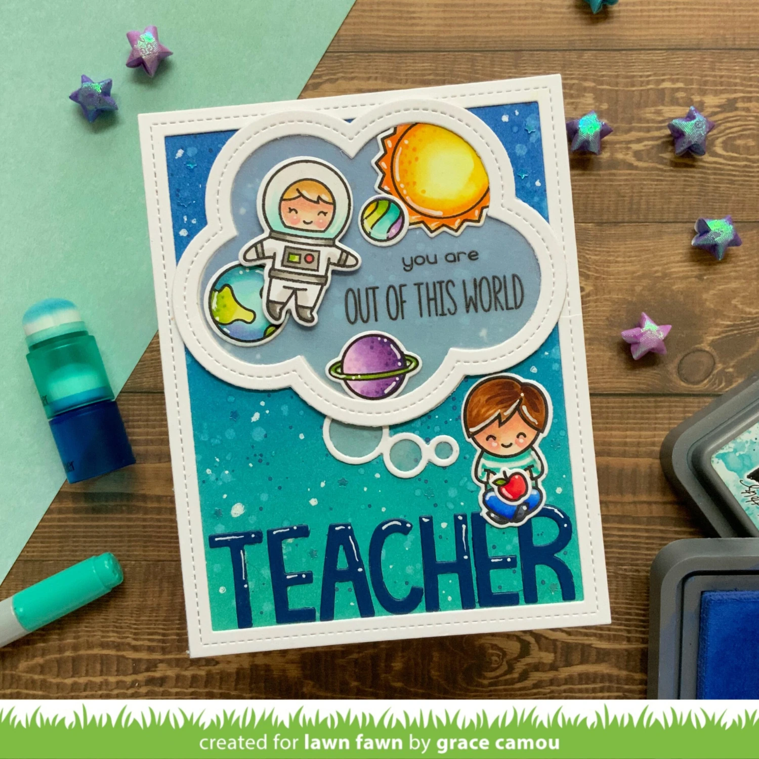 These stitched thought bubble shaped frames coordinate with Outside In Stitched Thought Bubble Stackables, and they are perfect for shakers and other fun projects!