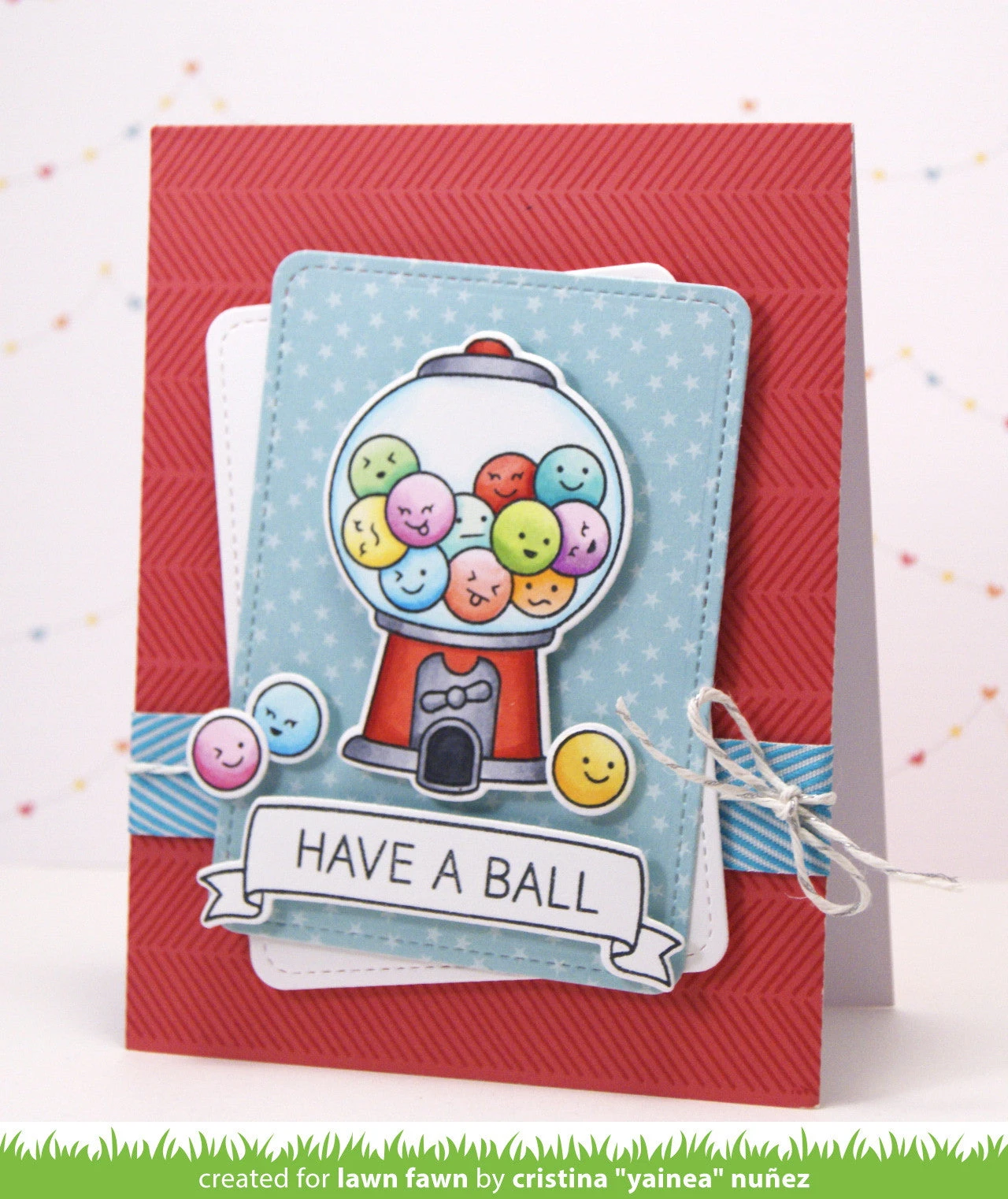 You’ll have a ball with these 23 clear stamps! This set features a gumball machine, sentiments, and lots of smiley faces that will fit in the gumballs. The smiley faces will also coordinate with lots of other Lawn Fawn stamps, so you can stamp a smile onto your favorite image!Â