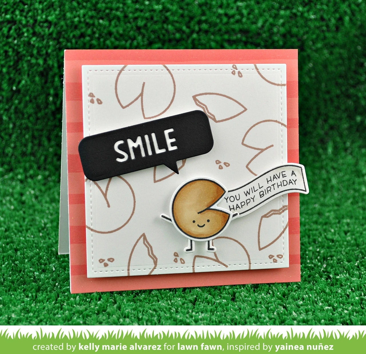 Your fortune says… you will love this mini stamp set! This cute fortune cookie set was created to celebrate Lawn Fawn’s eighth birthday.