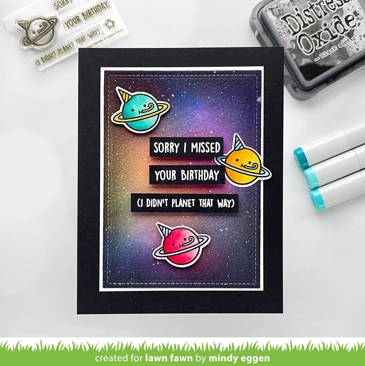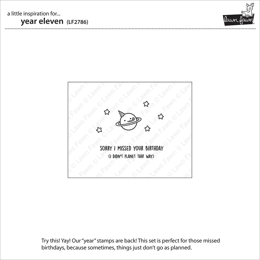 We didn’t planet to forget our birthday last year… This cute set was created to celebrate Lawn Fawn’s eleventh birthday (and those birthdays we sometimes space out about…)